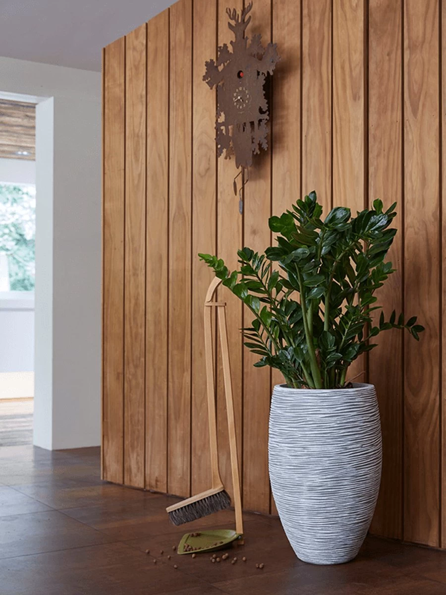 De Rib-textuur geeft deze pot een natuurlijke look. Deze textuur is geïnspireerd op gevlochten riet en de dunne lijnen daarvan. De smalle, dansende lijnen zorgen naast een natuurlijke look ook voor een speelse touch aan deze potten. De Nature Rib NL is verkrijgbaar in de kleuren zwart, ivoor, antraciet en donkerbruin. Deze verschillende kleuren geven iedere bloempot een eigen karakter.