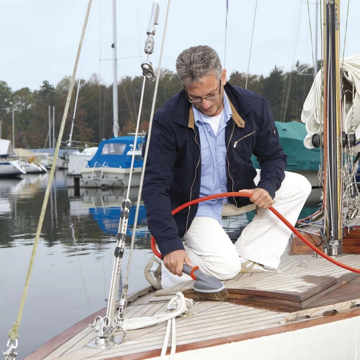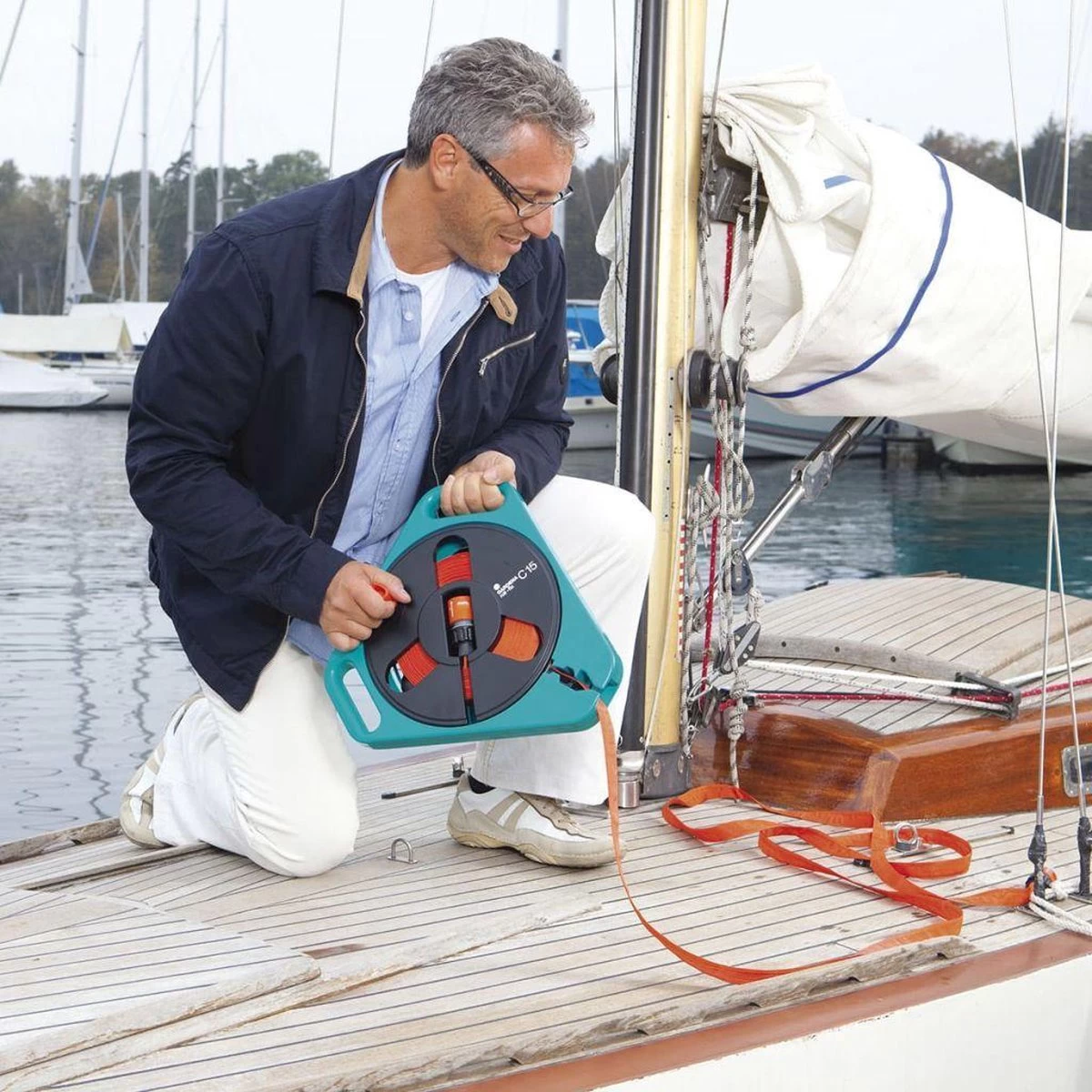 Gardena roll-fix, 15 m platte slang in cassette Licht en compact. Geïmpregneerde platte slang. Met veiligheids automaat die voorkomt dat bij het onopzettelijk onder druk zetten van de nog niet afgerolde slang, de draagcassette stuk gaat. Barstdruk boven 25 bar. Compleet met Original Gardena System aansluitstukken en tuinspuit.