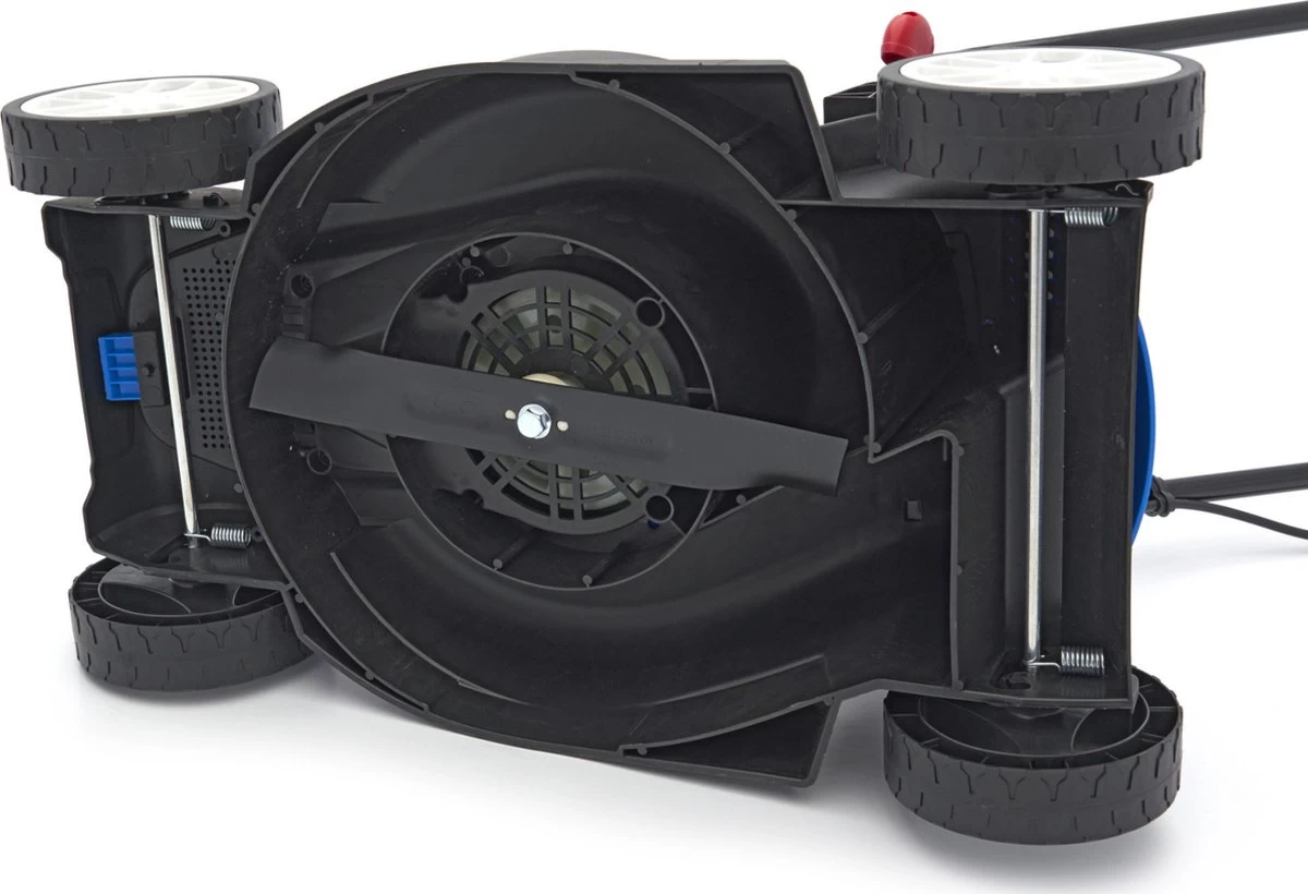 De 1400 Watt grasmaaier is een mooie lichte en compacte elektrische tuinmachine, die zich zeer soepel laat bedienen en snel een mooi resultaat levert! De 1400 Watt motor zuigt met zijn maaimes met een diameter van 38 cm het gras aan, waardoor het rechtop gaat staan. Het roterende mes snijdt het gras vervolgens op de gewenste lengte.