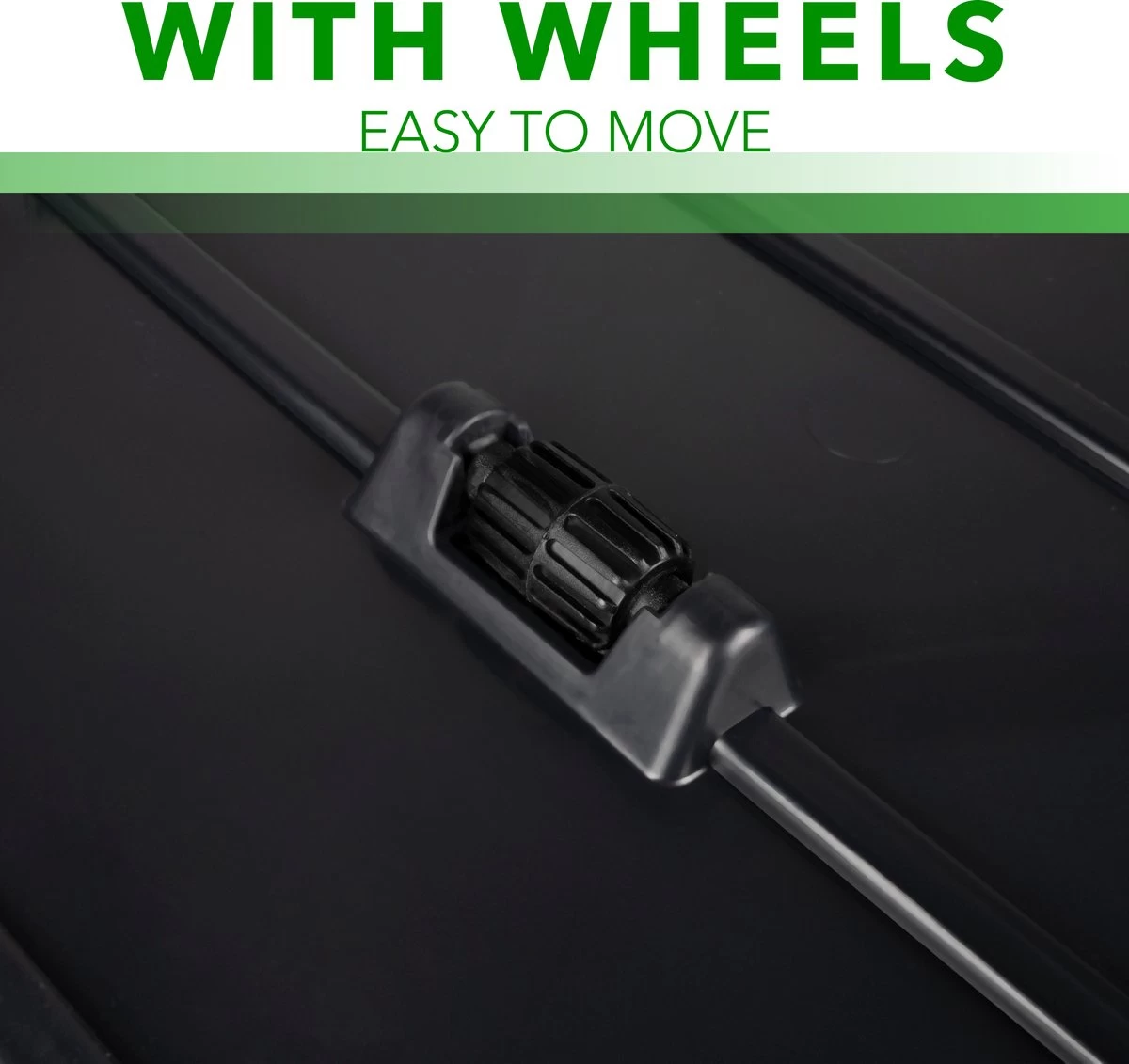 De kussenbox is UV-bestendig en weersbestenig en heeft een volume van 310 liter, hierdoor heb je voldoende ruimte om jouw tuinkussens snel en eenvoudig op te bergen. De opbergkist kan dankzij de wielen en de 3 handgrepen gemakkelijk verplaatst worden. De box is door hulp van het klik-systeem zeer eenvoudig te monteren.
