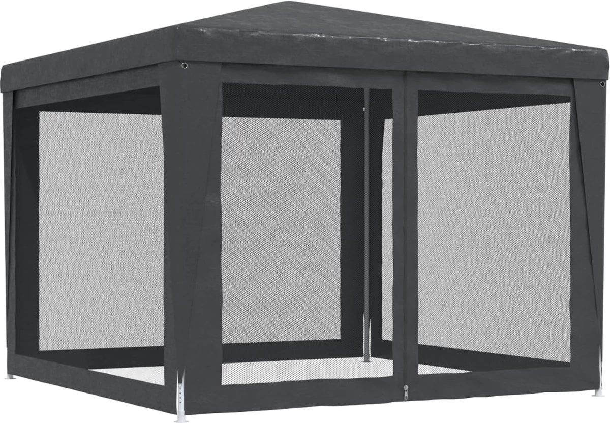Deze partytent, met een robuust ijzeren frame, een waterbestendig dak en 4 mesh zijwanden, is een ideale beschutting tegen de zon.
