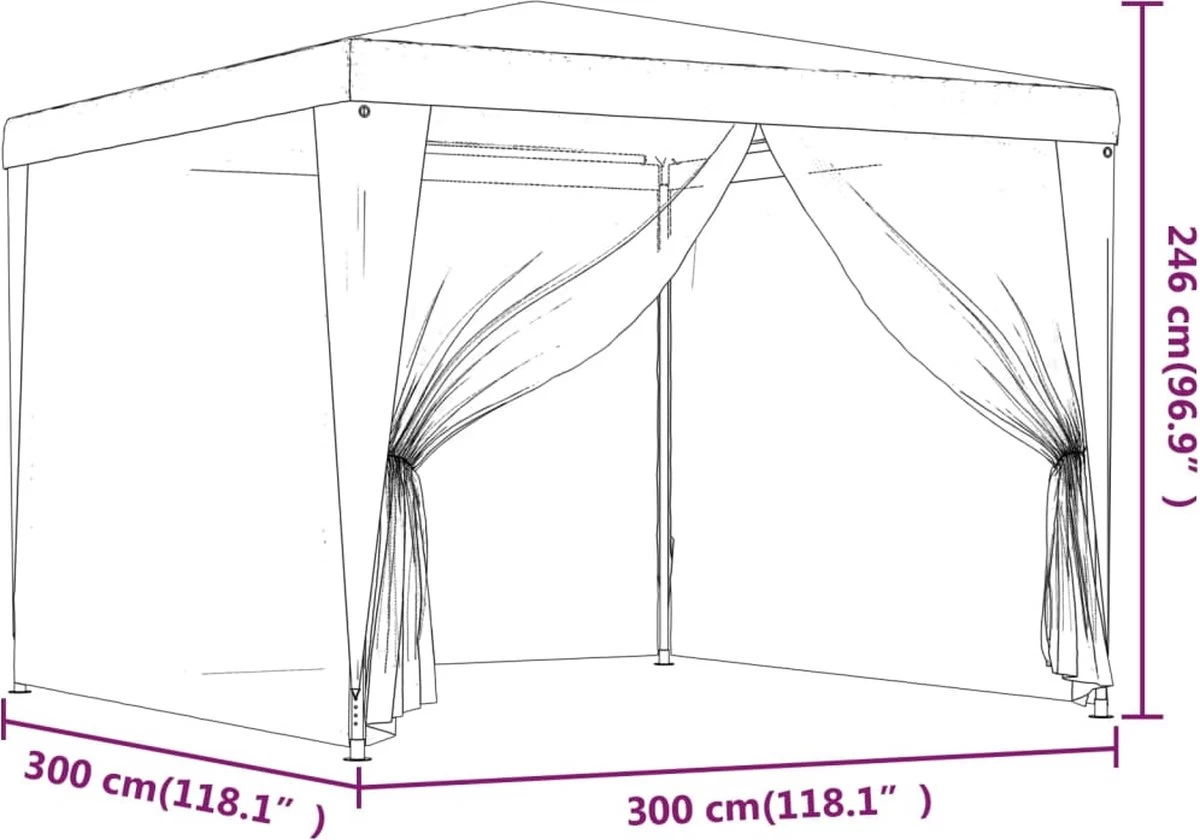 - Afmetingen: 300 x 300 x 246 cm (L x B x H)