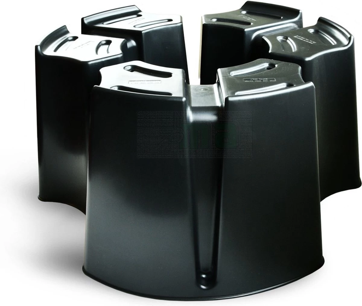 Regenton voet die verstelbaar is voor de Harcostar en andere regentonnen. De drie delen passen in elkaar, maar ze kunnen bij grotere tonnen ook afzonderlijk van elkaar geplaatst worden. Door het gewicht van de regenton blijven de delen dan op zijn plaats