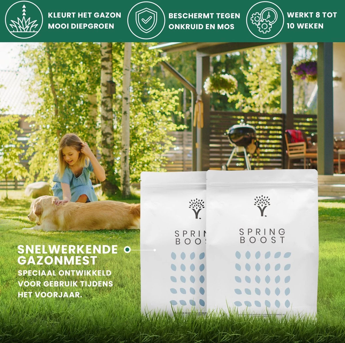 - Bevordert een sterk, gezond en groen gazon